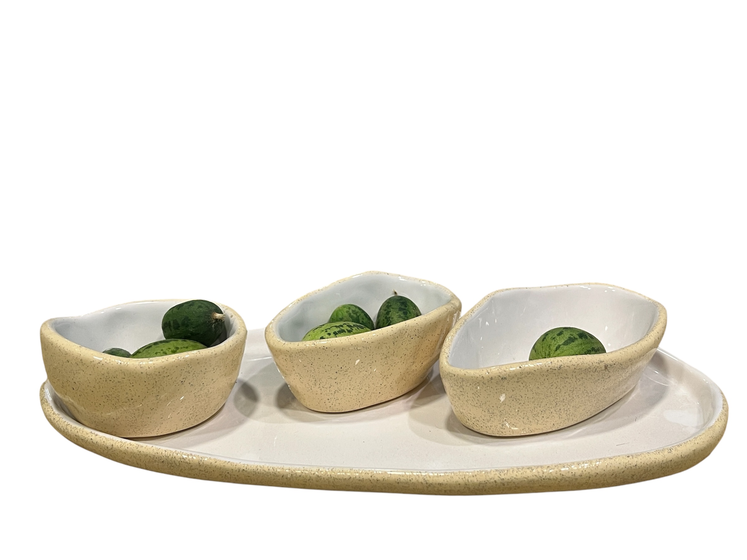 این ست تشکیل شده از یک سینی با سه عدد کاسه که کاملا دستساز است تمامی متریال آن از بهترین متریال موجود در بازار استفاده شده و لعابکاری شده از لعاب های استاندارد و دارای گواهی سلامت است و کاملا بی ضرر به جهت مصارف غذایی و غذاهای گرم و سرد می باشد این کار تک نسخه بوده و دقیقا محصول داخل عکس برای شما ارسال خواهد شد