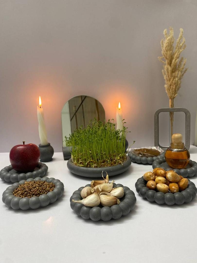۷ ظرف با اندازههای استاندارد – مناسب برای چیدن انواع سینهای هفتسین و دکوراتیو کردن میز نوروزی.