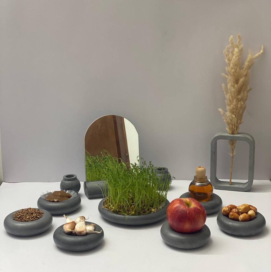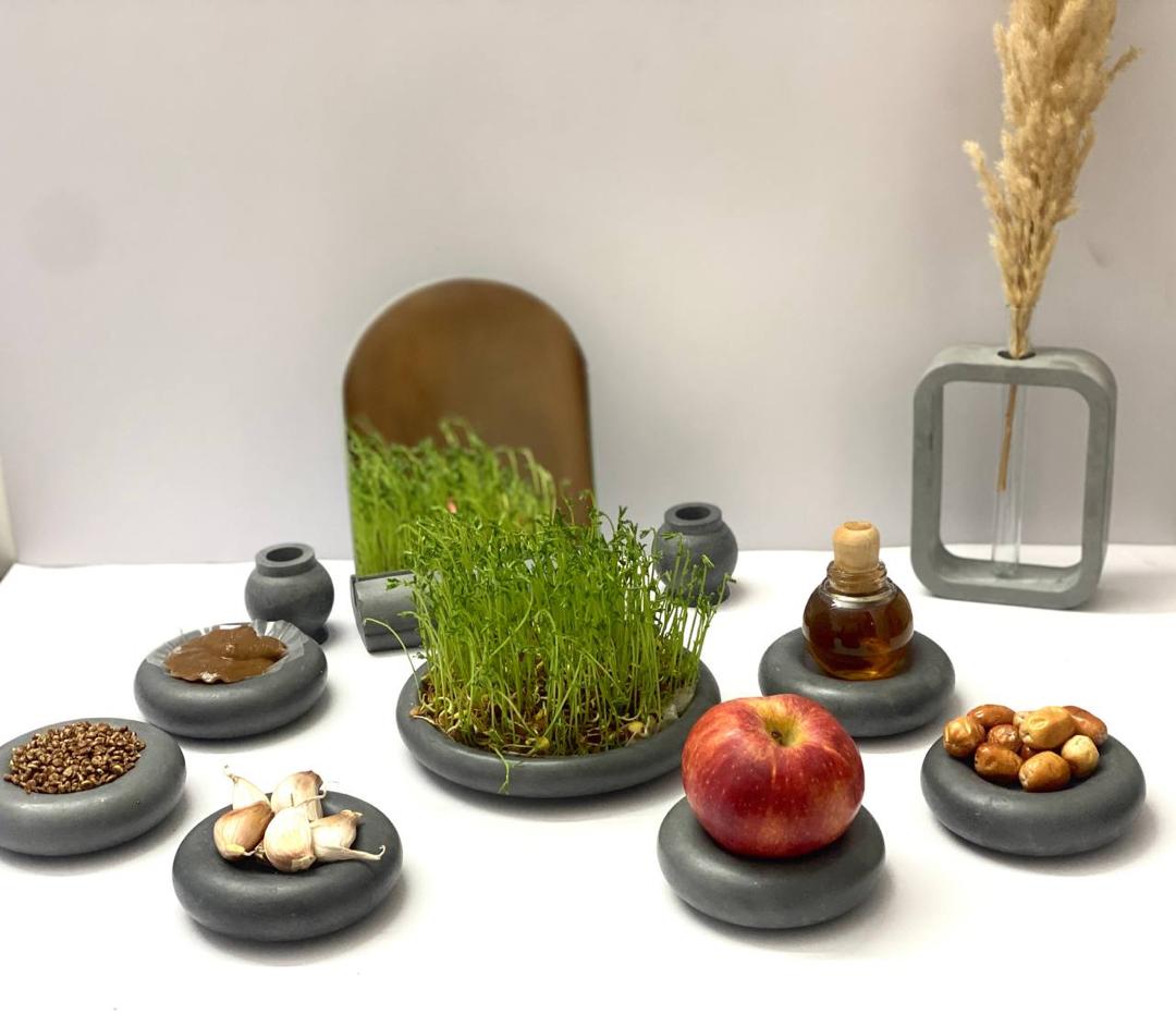 ۷ ظرف با اندازههای استاندارد – مناسب برای چیدن انواع سینهای هفتسین و دکوراتیو کردن میز نوروزی.
