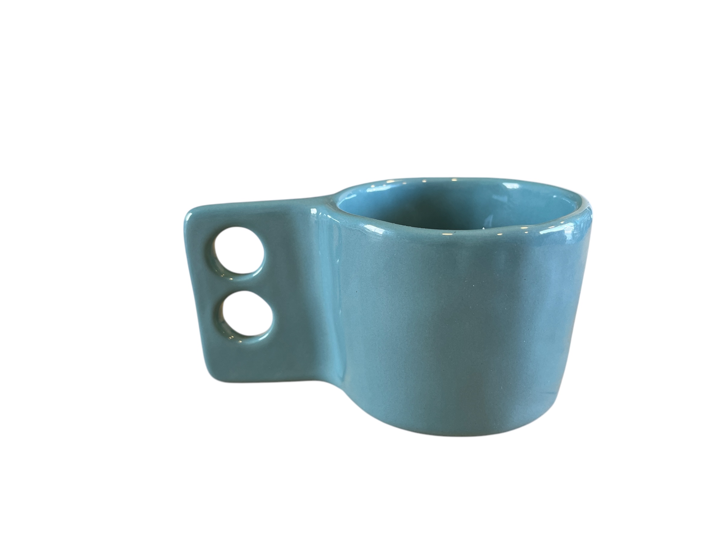 رنگ آبی ملایم و لعاب شفاف این ماگ، حس آرامش، لطافت و ظرافت را به کاربر منتقل میکند. طراحی خاص دسته با دو سوراخ دایرهای، علاوهبر ظاهر متفاوت، گرفتن ماگ را راحتتر و جذابتر کرده است. برخلاف ماگهای صنعتی، این ماگ تنها در یک نسخه ساخته شده و هیچ نسخهی مشابهی در بازار ندارد.