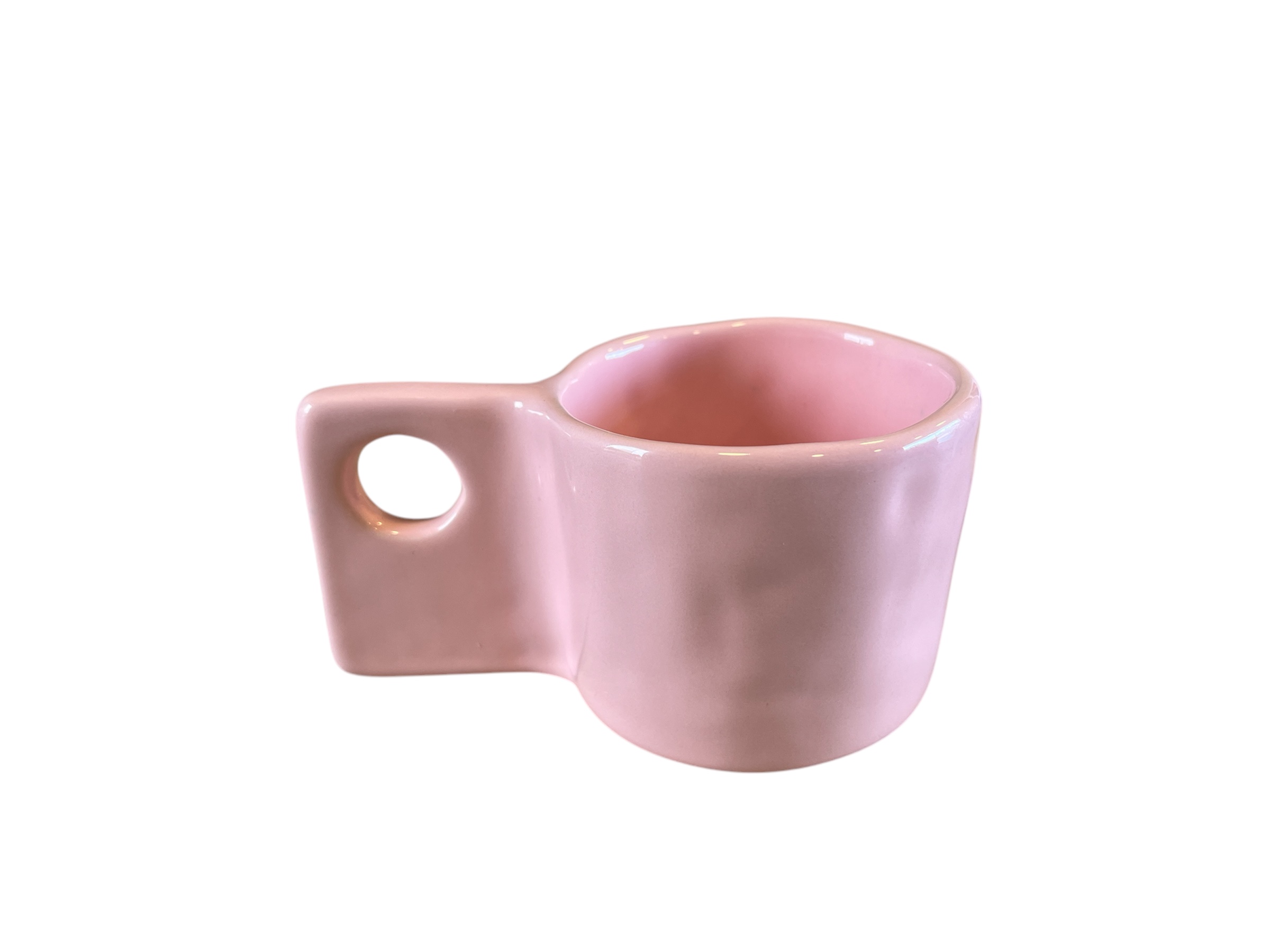 رنگ صورتی ملایم این ماگ، حس لطافت و آرامش را به بیننده منتقل میکند. لعاب براق و یکنواخت آن نهتنها زیبایی بصری بالایی دارد، بلکه در برابر گرما و شستوشو نیز مقاوم است. طراحی خاص دسته با سوراخ دایرهای، ظاهر مدرن و خاصی به ماگ داده و آن را از هر محصول مشابهی متمایز میکند.