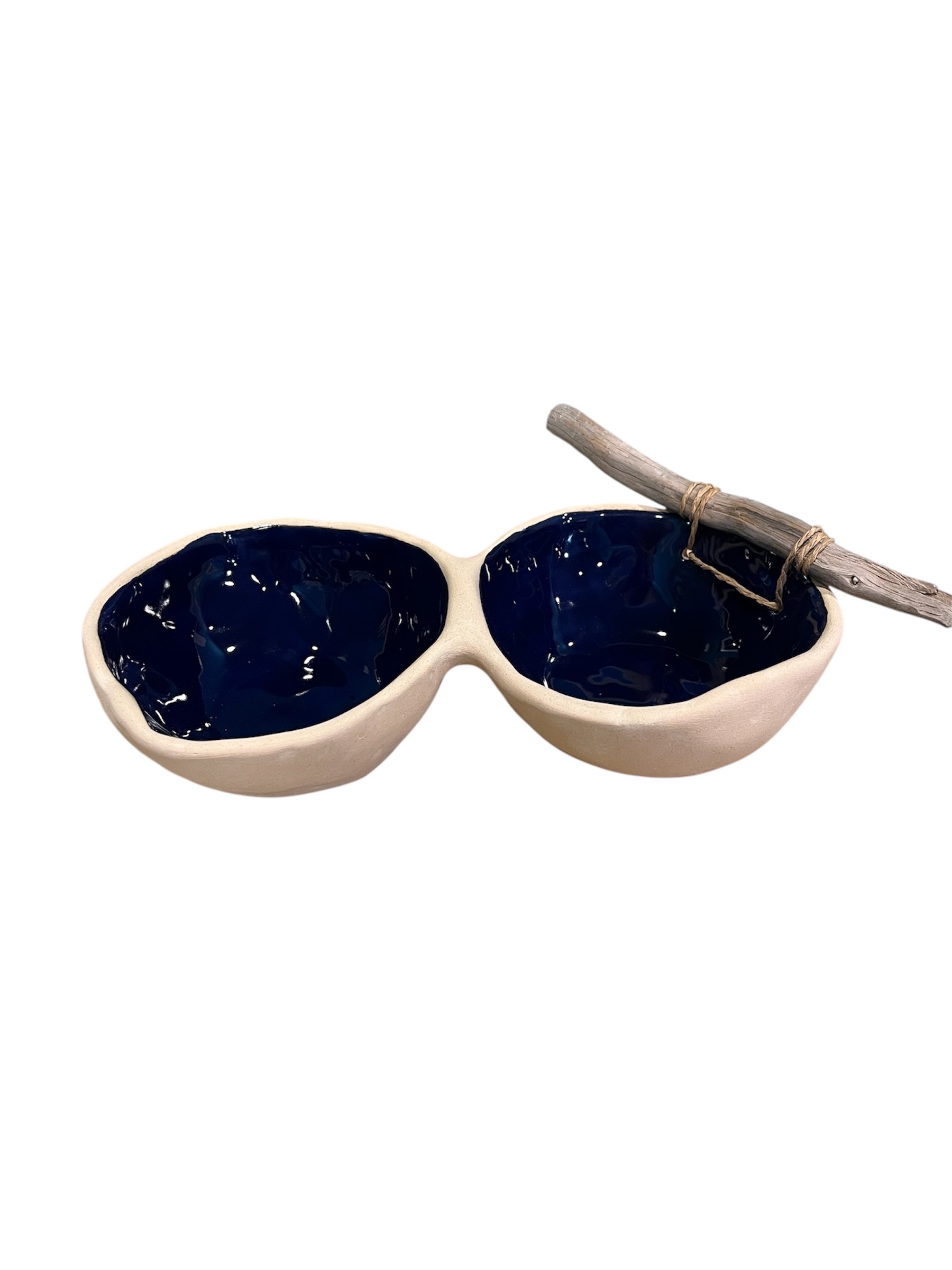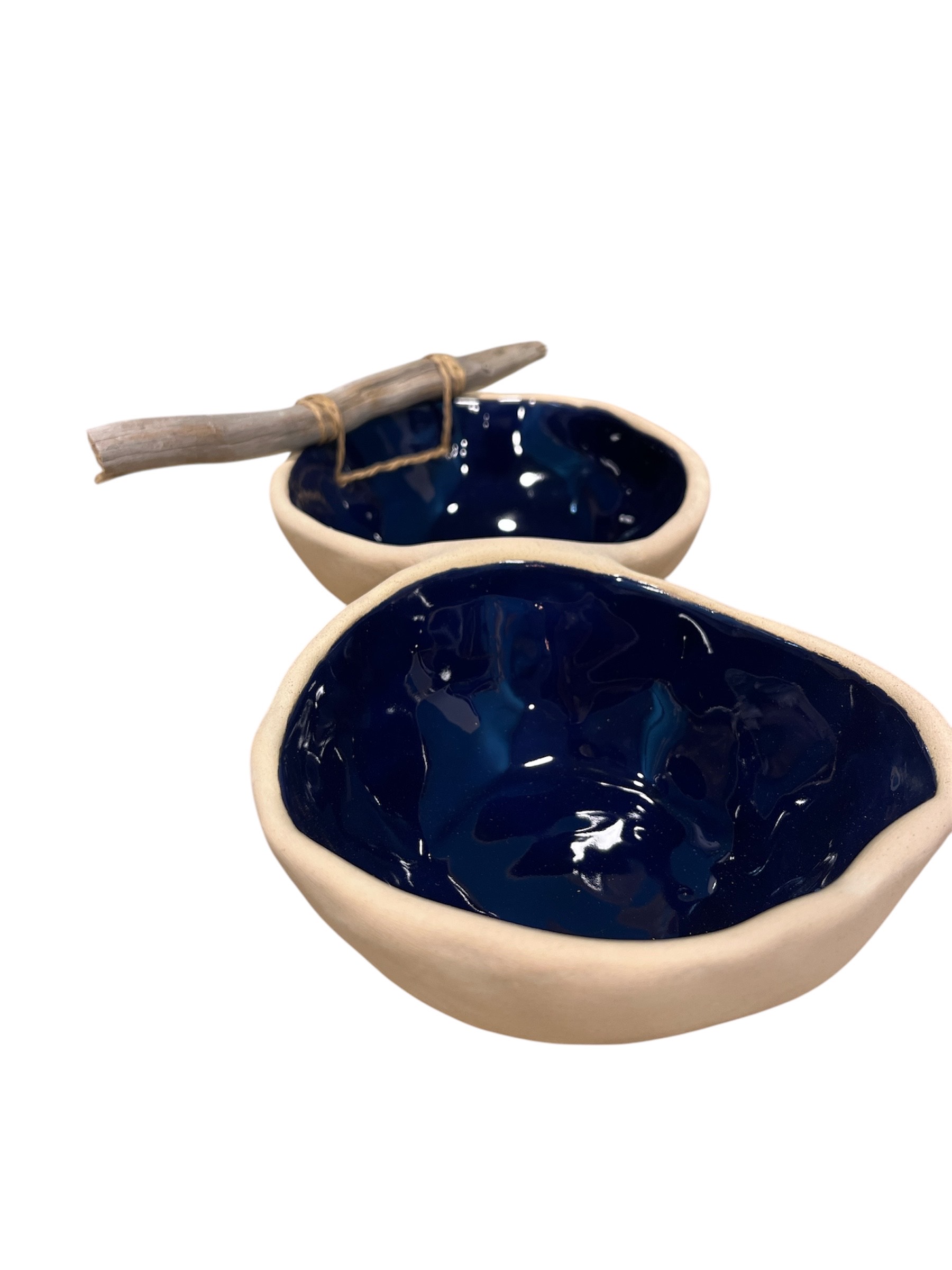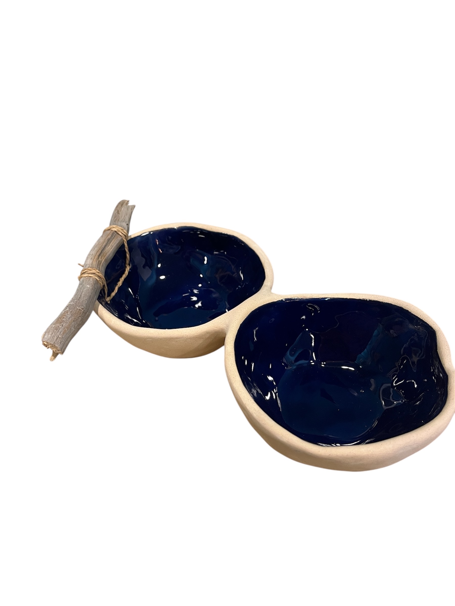 کاسه دوقلو سرامیکی دستساز با لعاب لاجوردی | ترکیبی از هنر، طبیعت و کاربرد