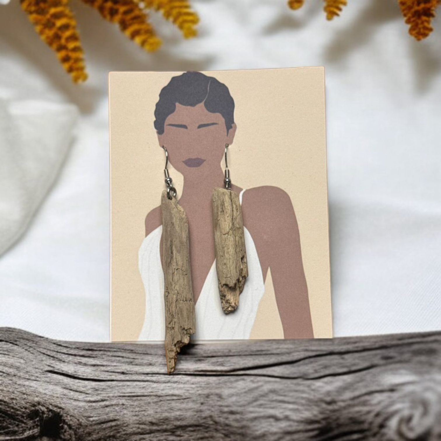 گوشواره دستساز چوبی زنانه با طراحی کشیده و ارگانیک، نمادی از زیبایی طبیعی و سادگی هنرمندانه است. این گوشواره از تکههای چوب طبیعی با بافت خام و دستنخورده ساخته شده و هر جفت آن به دلیل تفاوت رگهها و فرم چوب، کاملاً منحصربهفرد و غیرتکراری است.